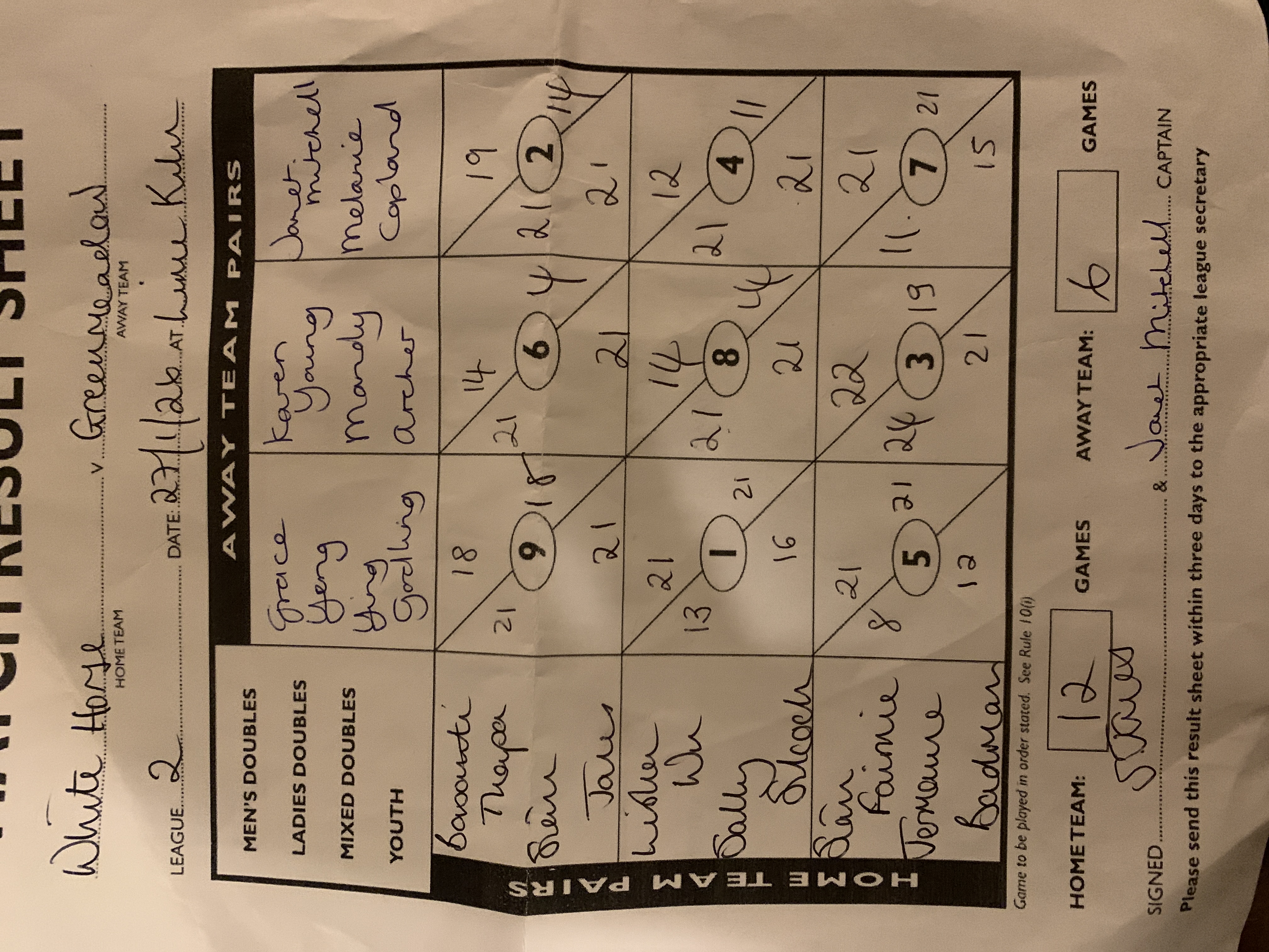 | 25-02-2026 | 20:00 | Wednesday | 16 Feathers A | Whitehorse A | Lime Kiln Leisure Centre, Royal Wootton Bassett, Swindon, SN4 7HG | Upload | |