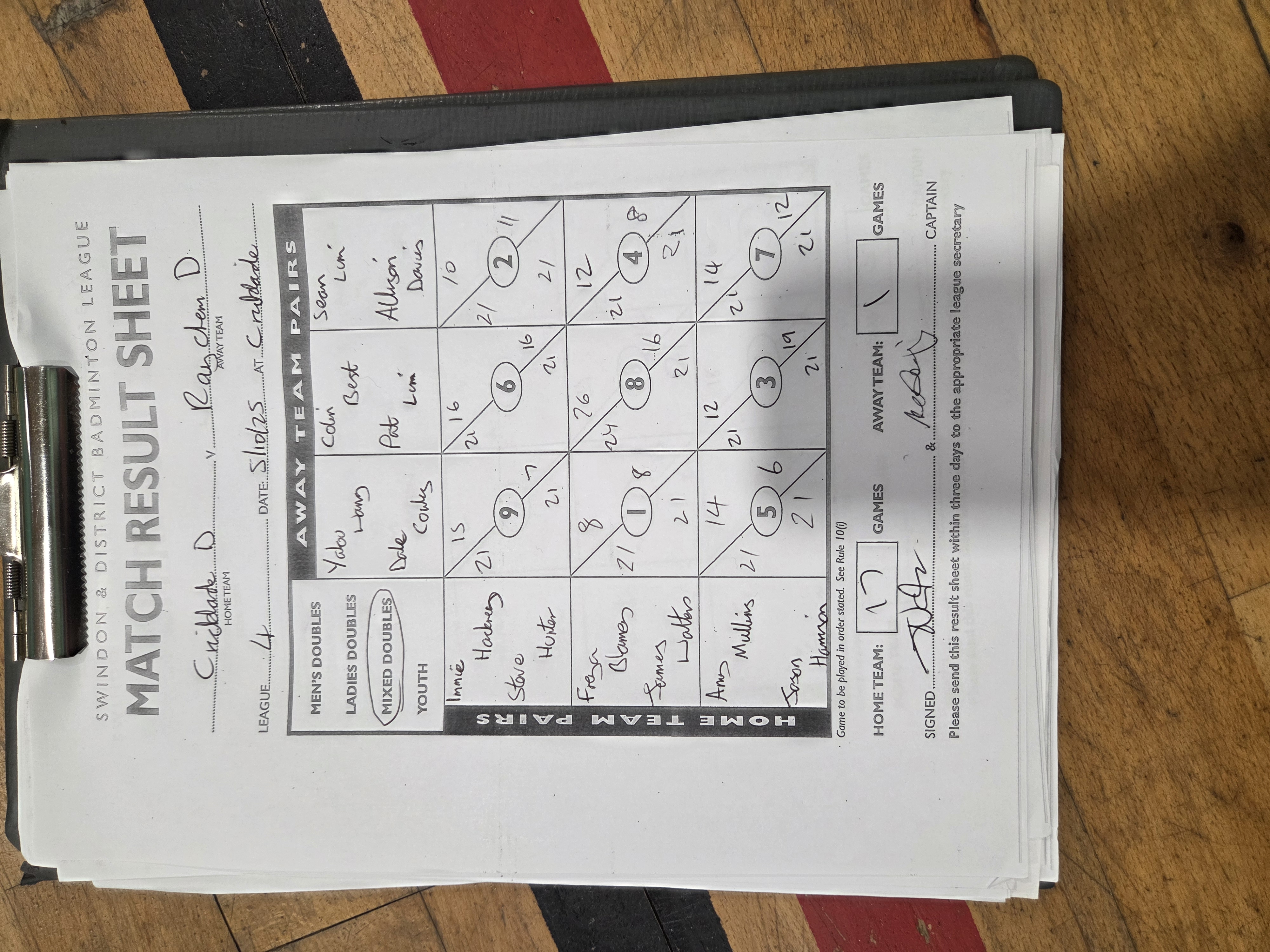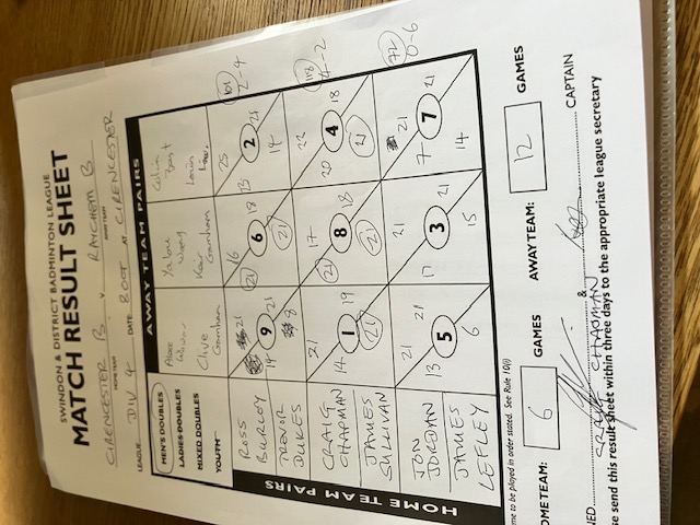 26-04-2026 | 18:45 | Sunday | Cricklade C | Swindon-Roussel B | Cricklade Leisure Centre, Stones Lane, Cricklade, Swindon, SN6 6JW | Upload |