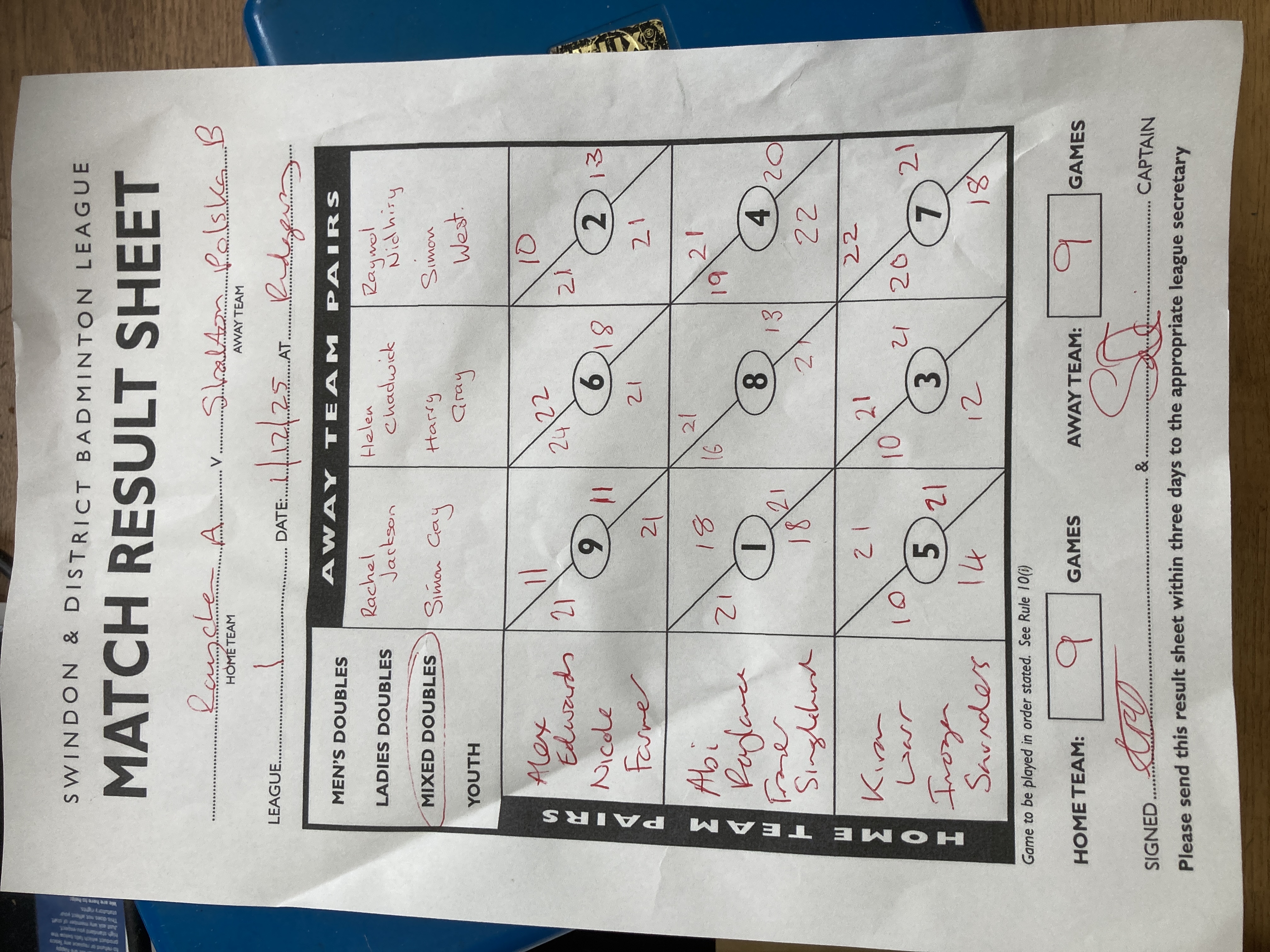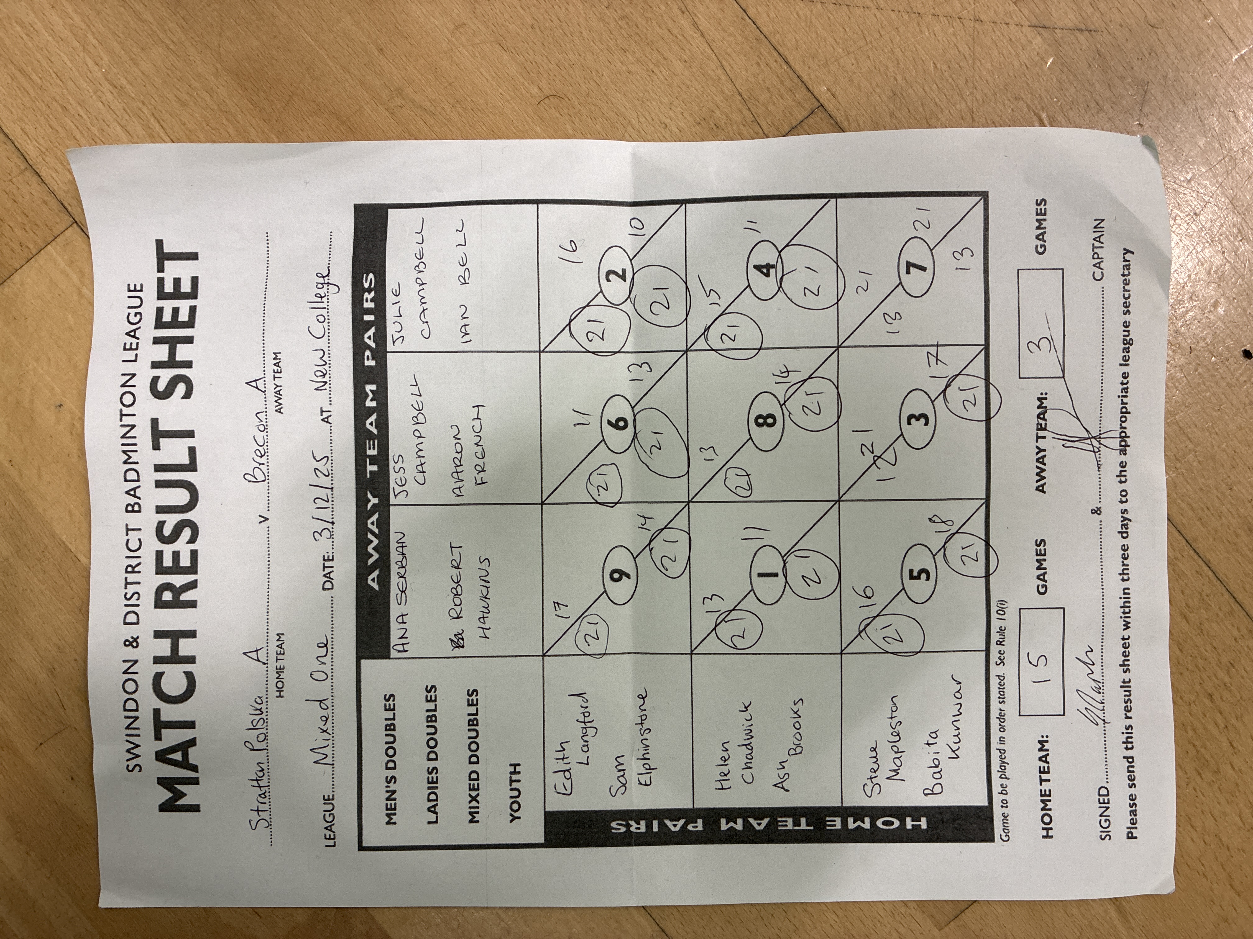 | 08-12-2025 | 19:00 | Monday | 16 Feathers B | Acers A | Grange Leisure and Community Centre, Grange Dr, Swindon, SN3 4JY | Upload | |