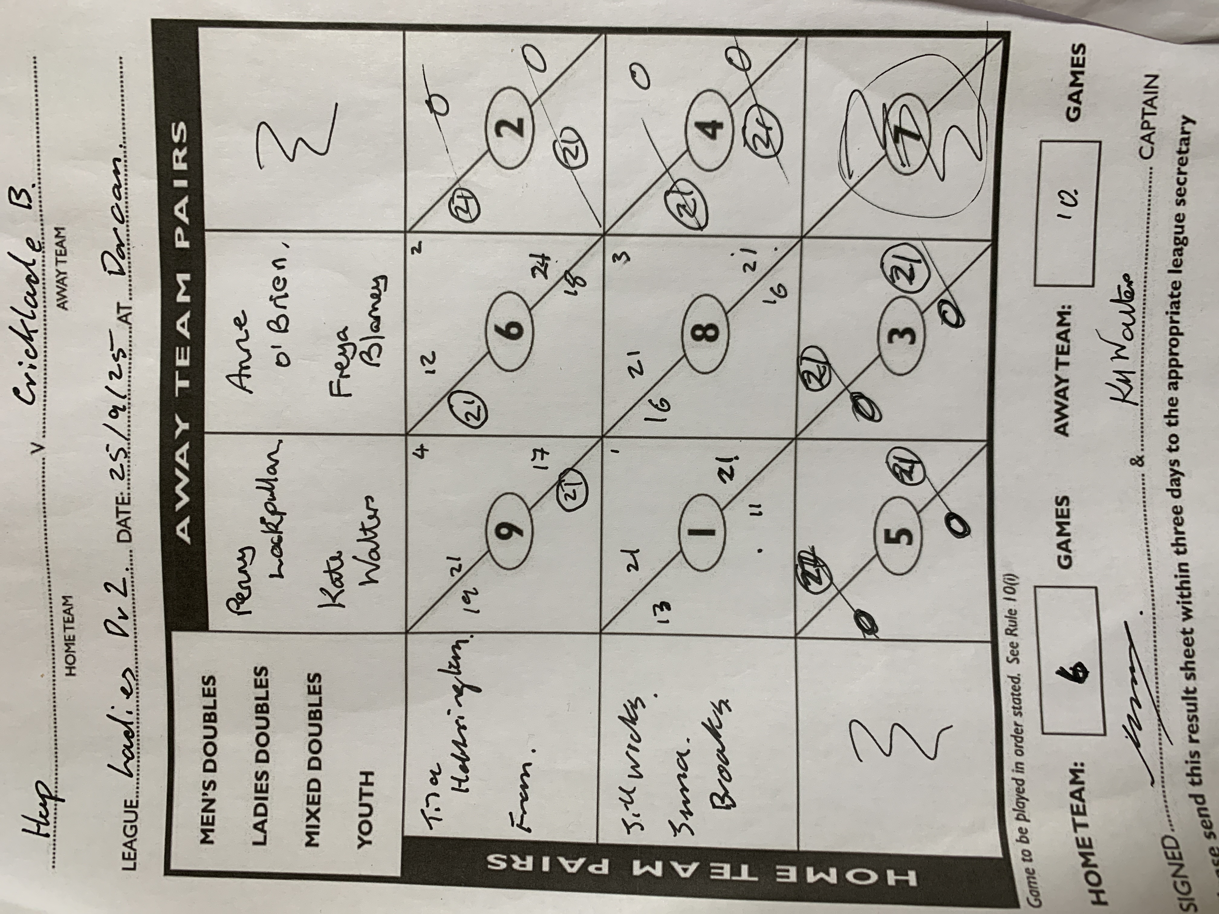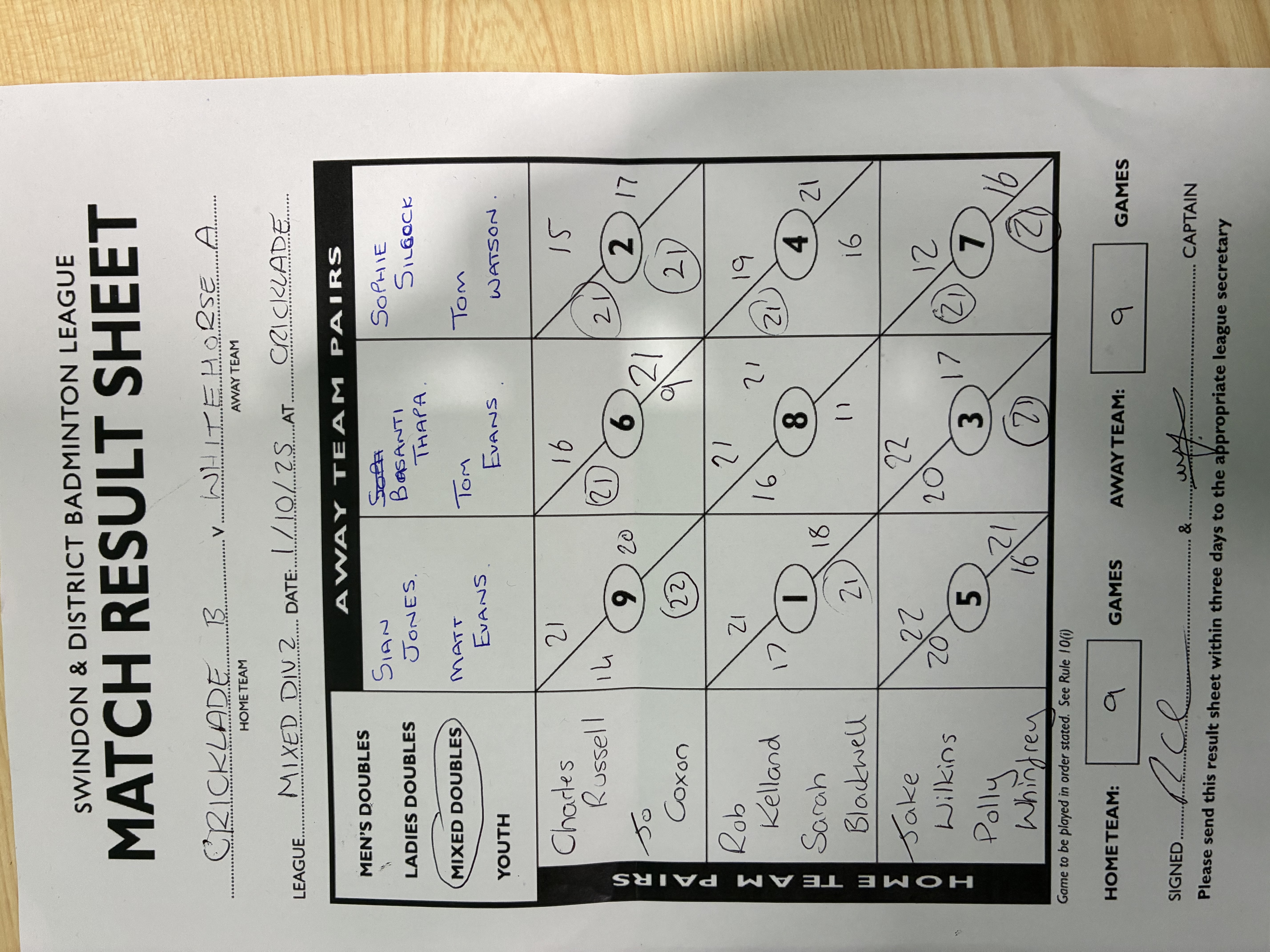 12-11-2025 | 19:30 | Wednesday | Cricklade B | Whitehorse B | Cricklade Leisure Centre, Stones Lane, Cricklade, Swindon, Wiltshire, SN6 6JW | Upload | |