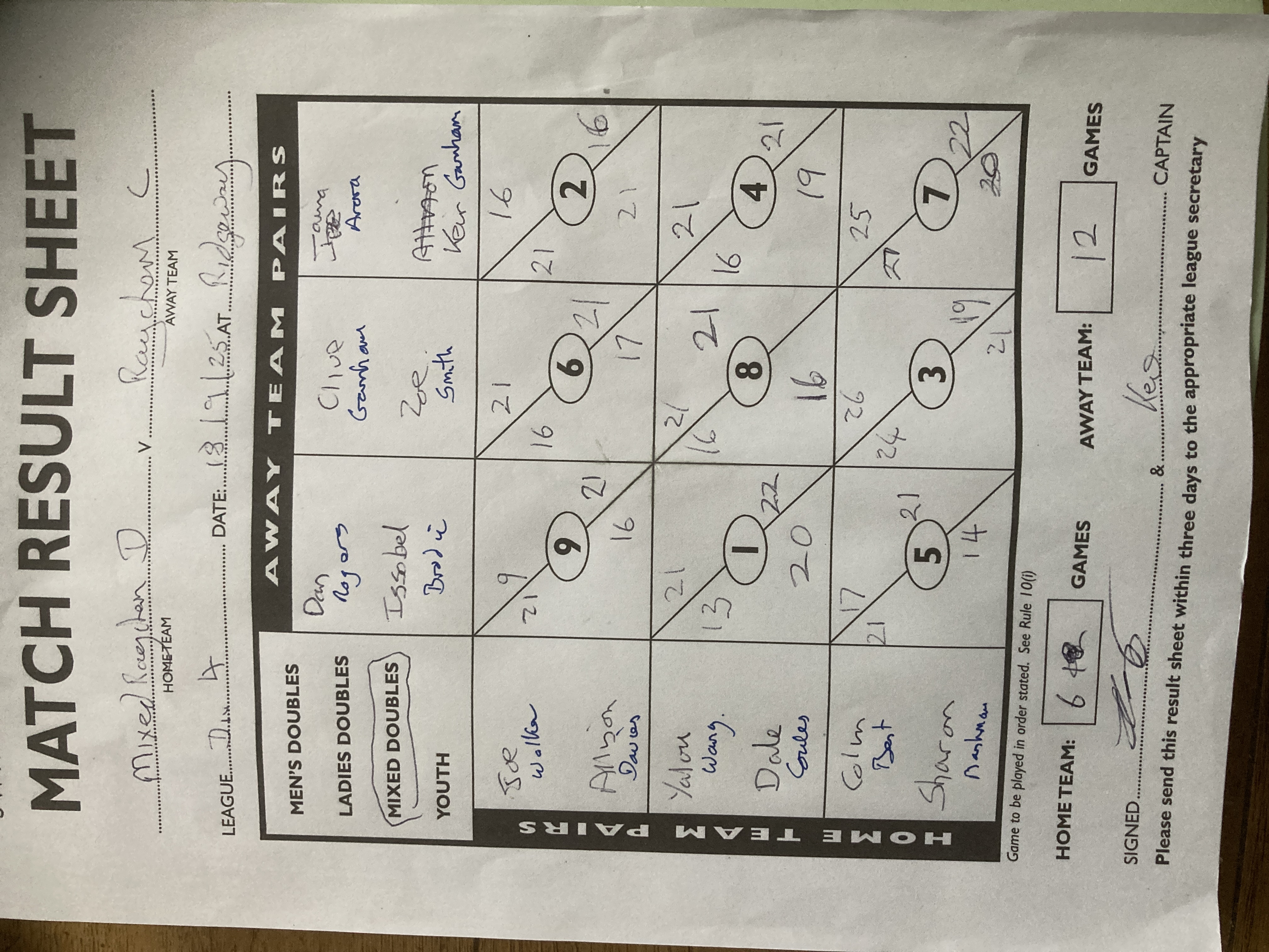 08-12-2025 | 19:00 | Monday | 16 Feathers B | Acers A | Grange Leisure and Community Centre, Grange Dr, Swindon, SN3 4JY | Upload | |
